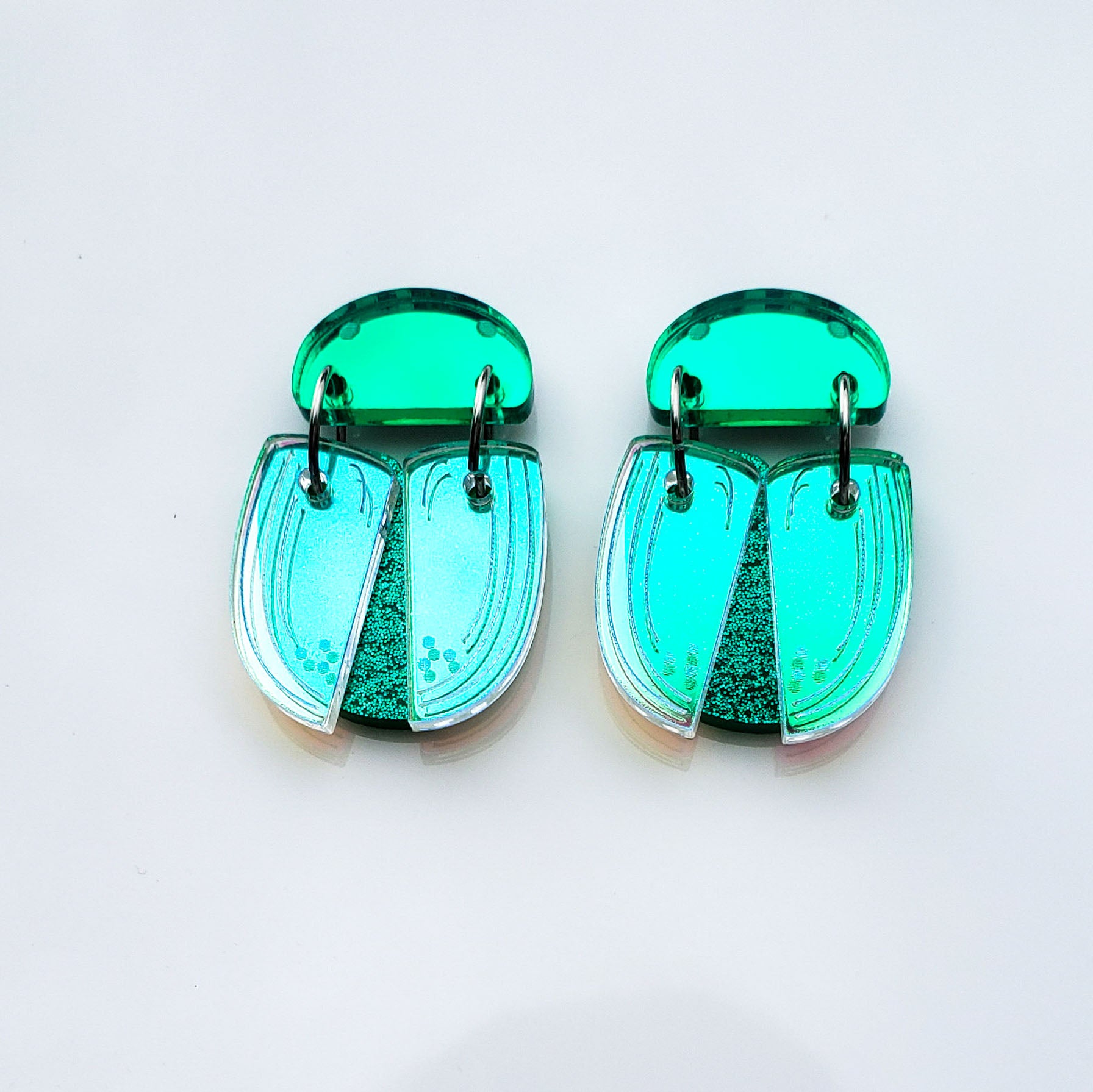 You'll stand out in a crowd in these glittery beetle dangle earrings with iridescent wings!