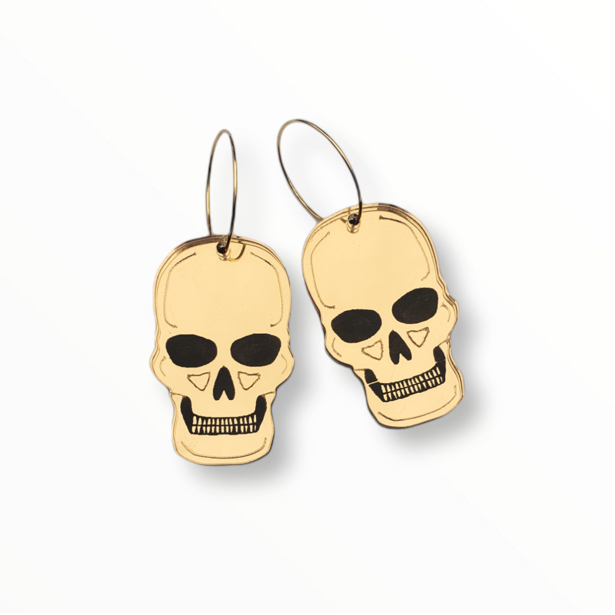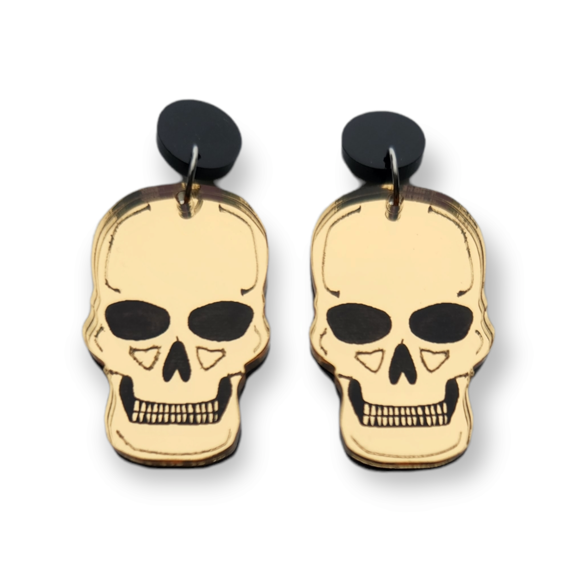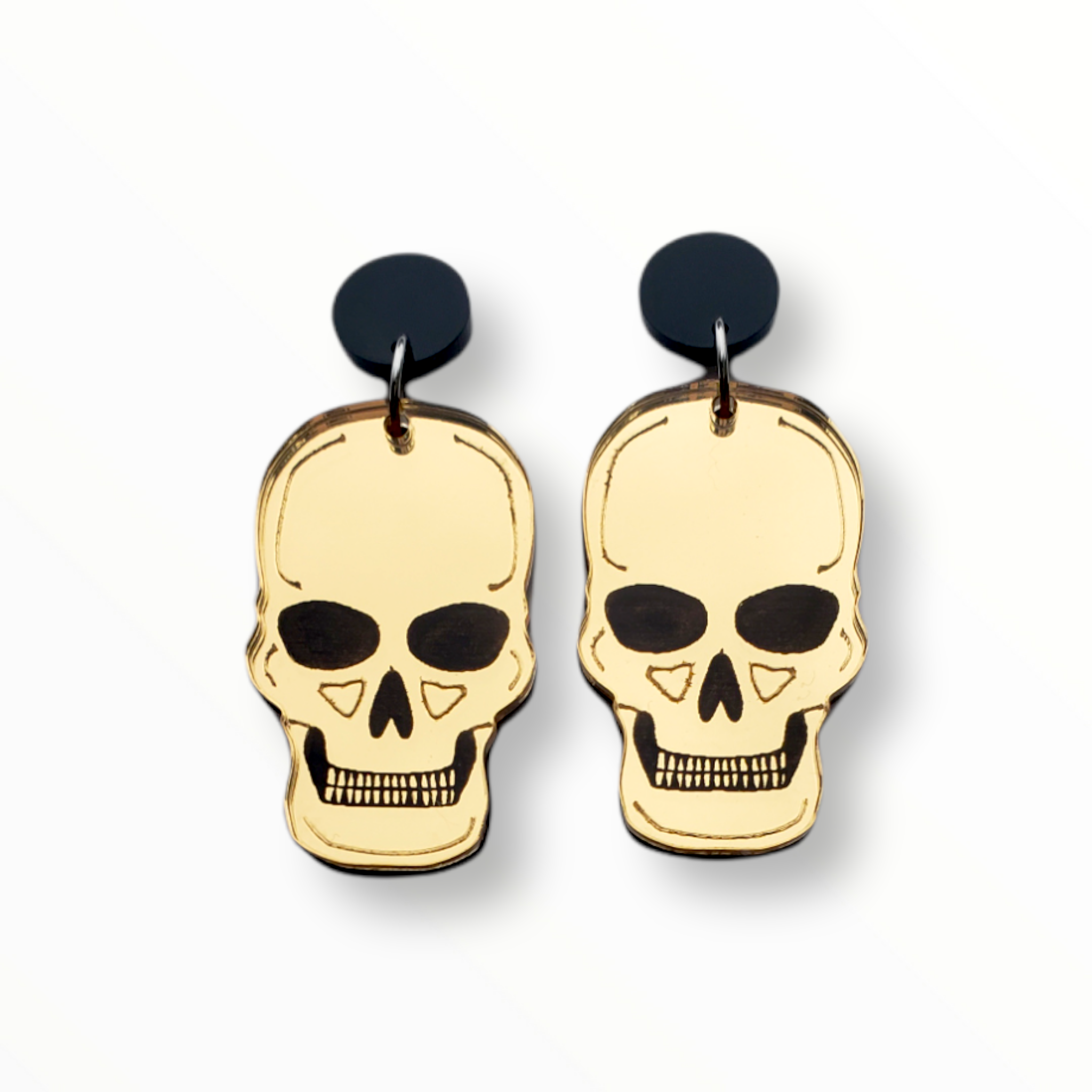 Happy Spooky Season! These skulls fit the bill perfectly for your spooky earring needs. These have a gold mirror finish.
